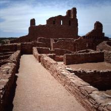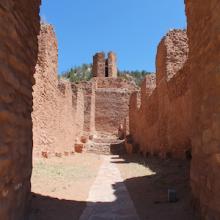 This church complex was established by Spanish Franciscan friars in modern-day New Mexico in the early seventeenth century. The Crown authorized the creation of several missions throughout this region with the objective of converting the native peoples to Catholicism. The target for these efforts at this mission were the Salinas Pueblos.