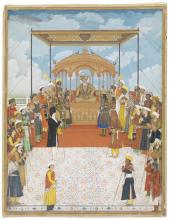 This painting by an unknown artist depicts the meeting of Dutch East India Company (VOC) officials and the ruler of Udaipur, a city in the present-day Indian state of Rajasthan. The meeting was part of a VOC diplomatic mission in 1711 to the Mughal emperor Bahadur Shah to attain letters of favor and trading privileges for the Company.