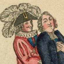 Class solidarity was never universal, as this print celebrates the victory of the peasantry over the nobility and clergy. The two defeated orders, linked together to create a horse, support the peasant who with his newly-won freedom, carries the result of a hunt--an activity not legal for commoners under the Old Regime. The peasant also proclaims, “Vive le roi [the King].